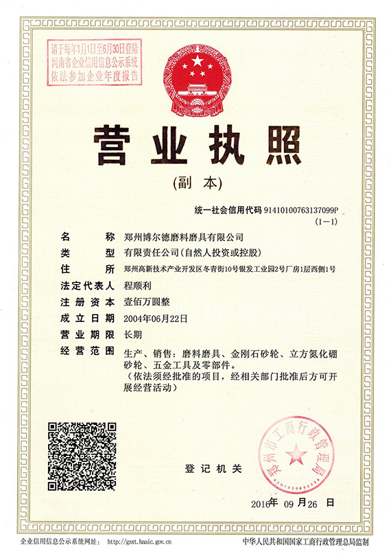 鄭州博爾德磨料磨具有限公司質(zhì)量管理體系認(rèn)證 GB/T19001-2016/ISO9001:2015